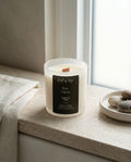 Hand-poured in Canada with clean-burning coconut soy wax and a soothing FSC-certified wooden wick, this candle fills your space with a soft, crackling glow. Poured into a frosted white vessel, it adds a serene, spa-like calm to your surroundings.