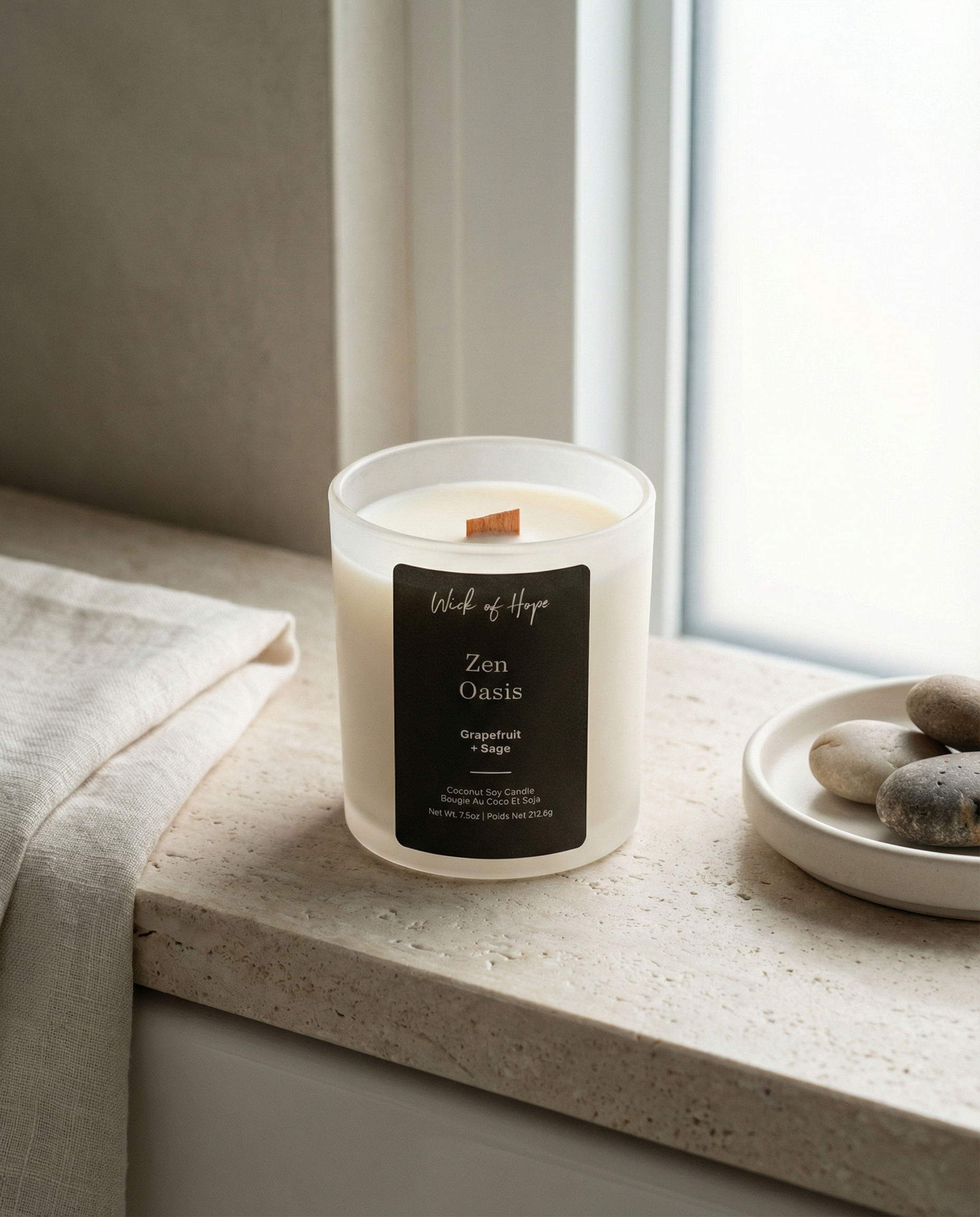 Zen Oasis carries you to a windswept shore where crisp grapefruit and earthy sage drift through the air, balanced by the soft briny freshness of sea salt and red algae. This serene blend creates a grounded, peaceful atmosphere that calms the spirit and soothes the senses.